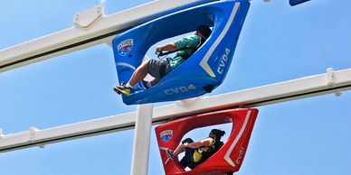 Innovative pedal-operated hanging monorail ride, featuring a durable fiberglass shell, is custom-designed for cruise ship entertainment. Suspended from an overhead track, riders pedal to propel themselves along the monorail, providing a unique, interactive experience with panoramic views. Engineered for safety and built with corrosion-resistant materials, including the lightweight yet robust fiberglass shell, this ride offers both reliability and excitement in demanding marine environments.